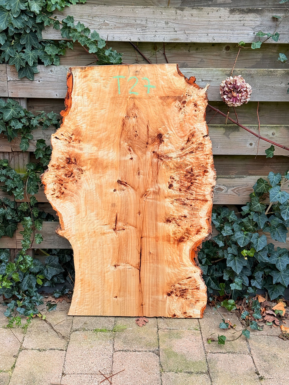powstają charakterystyczne wzory - plamki, małe sęki, wzory spiralne. Takie drewno jest